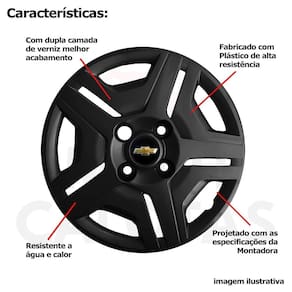 4x Calota GM Onix Prisma Corsa Aro 14 Preto brilhante Calota em Plástico de Alta resistência, Fabricado pela Grid Calotas com os mesmos padrões e exigências da montadora. Com logotipo incluso. SERVE: GM Corsa - todos GM Montana - todos GM Astra - todos GM Monza - todos GM Onix - todos GM Prisma - todos GM Vectra - todos CARACTERÍSTICAS: - Fabricado em Plástico Resistente - Com dupla camada de verniz - Resistente a água e calor - Feito de acordo com os padrões da montadora - Fixação: por Parafusos - Furação: 4x100 - Cubo: Baixo - Cor: Preto brilhante - Referência: 194cb - Marca: Grid Calotas ITENS INCLUSOS: - Um 1 Kit com Quatro 4 Calotas com Emblema Incluso. DIMENSÕES Unitário - Diâmetro: 39 cm - Altura: 4 cm INSTALAÇÃO A instalação é feita de forma simples, podendo ser feita por você mesmo. Não necessita retirar todos os parafusos. de 30 dias para defeitos de fabricação. Marca: Não Informado