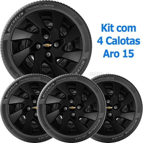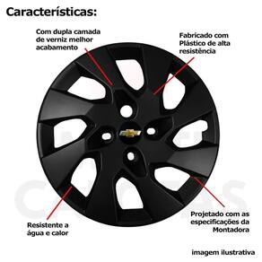 4x Calota Gm Onix Prisma Corsa Aro 15 Preto com Emblem 195cp Calota em Plástico de Alta resistência, Fabricado pela Grid Calotas com os mesmos padrões e exigências da montadora. Com logotipo incluso.