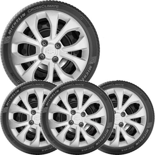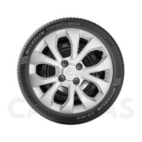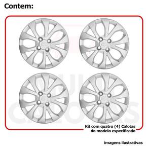 CARACTERÍSTICAS: - Fabricado em Plástico Resistente - Com dupla camada de verniz - Resistente a água e calor - Feito de acordo com os padrões da montadora - Fixação: por parafuso - Cubo: Padrão - Cor: Prata - Referência: 375cp - Marca: Grid Calotas