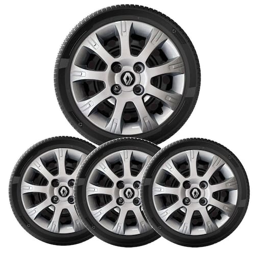 4x Calota Sandero Clio e Logan Aro 14 Prata com Emblema Calota em Plástico de Alta resistência, Fabricado pela Grid Calotas com os mesmos padrões e exigências da montadora. Com logotipo incluso. SERVE: Sandero todos Logan todos Clio todos CARACTERÍSTICAS: - Fabricado em Plástico Resistente - Com dupla camada de verniz - Resistente a água e calor - Fixação: por Parafusos - Furação: 4x100 - Cubo: Baixo - Cor: Prata - Referência: AR6003RN ITENS INCLUSOS: - Um 1 Jogo de Quatro 4 Calotas do Modelo Anunciado com Emblema Incluso DIMENSÕES Unitário - Diâmetro: 39 cm - Altura: 4 cm INSTALAÇÃO A instalação é feita de forma simples, podendo ser feita por você mesmo. Não necessita retirar todos os parafusos. de 30 dias para defeitos de fabricação. Marca: Não Informado