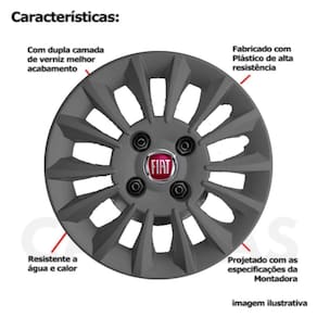 4x Calota Uno Palio Siena Aro 13 Grafite 015cb Calota em Plástico de Alta resistência, Fabricado pela Grid Calotas com os mesmos padrões e exigências da montadora. Com logotipo incluso.