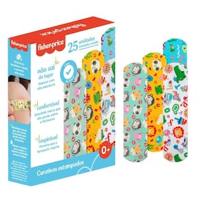 Marca: fisher price Modelo: hc483 Quantidade: caixa com 25 curativos Estampas variadas: cada curativo possui estampas exclusivas e coloridas, com personagens e elementos lúdicos que encantam as crianças. Adesão confortável: fabricados com material de alta qualidade que garante uma aderência eficaz sem machucar a pele delicada das crianças. Respirabilidade: os curativos são projetados para permitir a ventilação adequada da pele, prevenindo irritações. Fácil aplicação: cada curativo é embalado individualmente, garantindo higiene e praticidade na aplicação. Uso pediátrico: ideal para pequenos cortes, arranhões e machucados, promovendo uma cura segura e rápida. Benefícios: