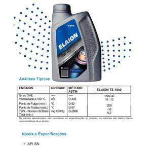 O Óleo Lubrificante 15W40 SN Elaion TS1540 Semissintético em embalagem de 1 litro oferece proteção confiável e desempenho otimizado para o motor do seu veículo. Caracterizado por uma formulação semissintética, combina óleos básicos refinados e aditivos de alta qualidade para garantir uma lubrificação eficaz. Com classificação de viscosidade SAE 15W40, proporciona proteção em uma ampla faixa de temperaturas. Certificado SN, atende aos mais recentes padrões de qualidade e desempenho da indústria automotiva. Reduz o desgaste das peças do motor, minimiza o atrito e previne a formação de depósitos prejudiciais. Além disso, sua embalagem de 1 litro é prática e conveniente para uso e armazenamento. O Óleo Lubrificante 15W40 SN Elaion TS1540 Semissintético é uma escolha confiável para manter o motor do seu veículo protegido e funcionando de forma eficiente em todas as condições de operação.