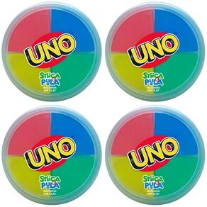 Massinha que estica, semelhante a uma slime, pula e pode ser modelada! Com as cores icônicas do jogo UNO. Há várias brincadeiras que as crianças irão adorar.