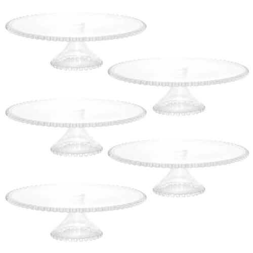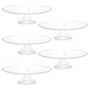 5 Boleiras com Pé Prato Porta Bolo 31cm Cristal Pearl Bolos Doces e Tortas Wolff.