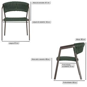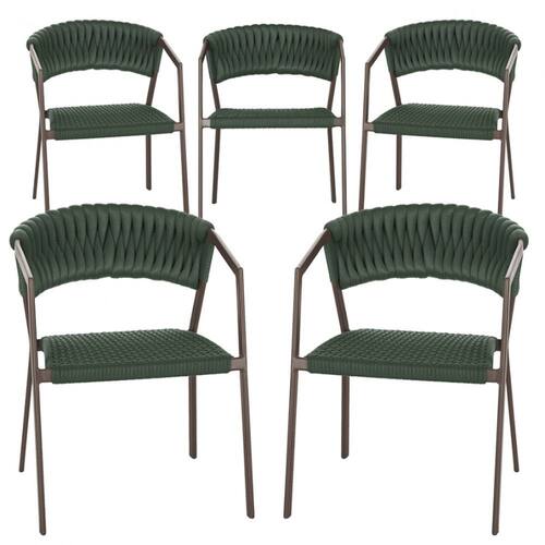 5 Cadeiras Atenas Tricô Náutico e Alumínio com Proteção UV para Varanda, Cozinha, Área, Jardim - Pintura Marrom - Verde