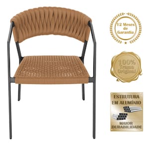 5 Cadeiras Atenas Tricô Náutico e Alumínio com Proteção UV para Varanda, Cozinha, Área, Jardim - Pintura Preto - Laranja