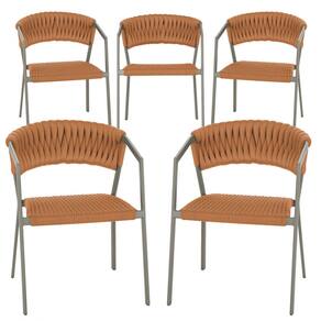 5 Cadeiras Atenas Tricô Náutico e Alumínio com Proteção UV para Varanda, Cozinha, Área, Jardim - Laranja