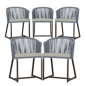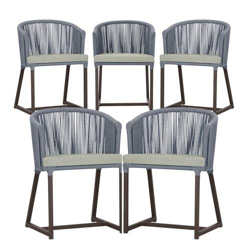 5 Cadeiras de Jantar Área Noronha em Alumínio com Pintura Marrom Corda Náutica E13 Trama - Prata