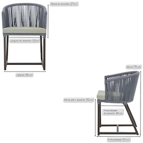 Antes de comprar o seu produto verifique as medidas, o local onde pretende instalar e se necessário contratar o serviço de um profissional qualificado. Produto conhecido como: Cadeira Noronha, Cadeira de alumínio, Corda náutica, Estofado impermeável, Móveis de exterior, Cadeira resistente à água, Design moderno em Cadeira, Cadeira para área externa, Cadeira de jardim, Móveis para varanda, Cadeira durável, Cadeira de alta qualidade, Conforto em Cadeira, Cadeira elegante.