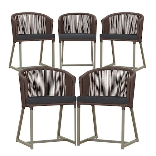 5 Cadeiras De Jantar Noronha Fendi Corda Náutica E11 Trama Marrom