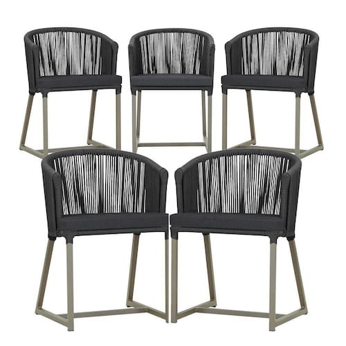 5 Cadeiras De Jantar Noronha Fendi Corda Náutica E11 Trama Preto