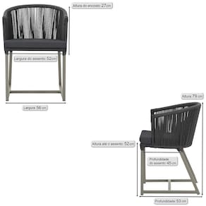 Antes de comprar o seu produto verifique as medidas, o onde pretende instalar e se necessario contratar o servico de um qualificado. Produto conhecido como: Cadeira Noronha, Cadeira de aluminio, Corda nautica, Estofado impermeavel, Moveis de exterior, Cadeira resistente a agua, Design moderno em Cadeira, Cadeira para area externa, Cadeira de jardim, Moveis para varanda, Cadeira duravel, Cadeira de alta qualidade, Conforto em Cadeira, Cadeira elegante.