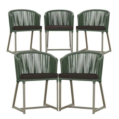 5 Cadeiras De Jantar Noronha Fendi Corda Náutica E9 Trama Verde