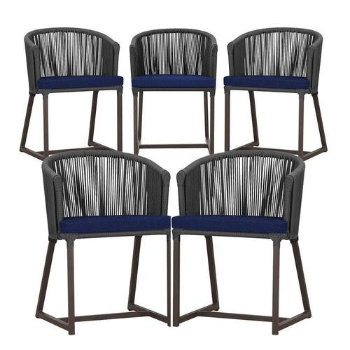 5 Cadeiras De Jantar Noronha Marrom Corda Náutica E10 Trama Preto
