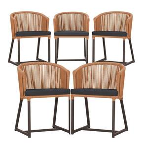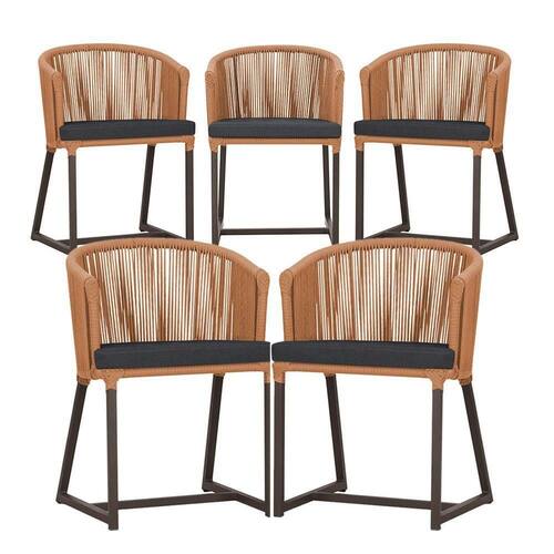 5 Cadeiras De Jantar Noronha Marrom Corda Náutica E11 Trama Terra Cota