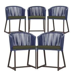 5 Cadeiras De Jantar Noronha Marrom Corda Náutica E13 Trama Azul