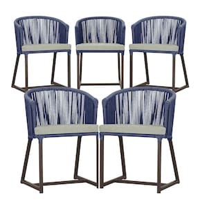 5 Cadeiras De Jantar Noronha Marrom Corda Náutica E3 Trama Azul