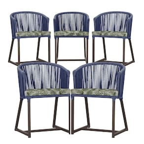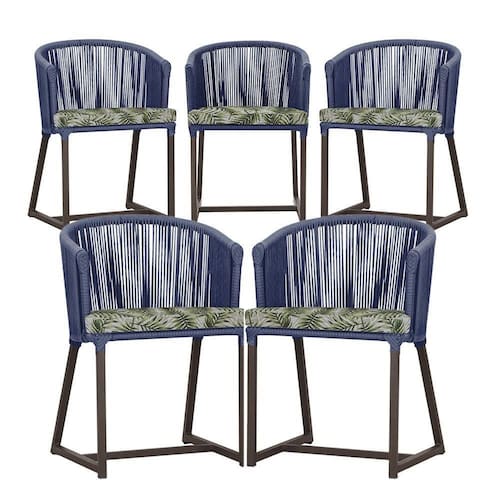 5 Cadeiras De Jantar Noronha Marrom Corda Náutica E5 Trama Azul