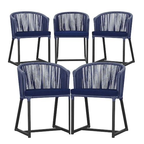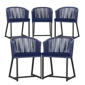 5 Cadeiras De Jantar Noronha Preta Corda Náutica E10 Trama Azul