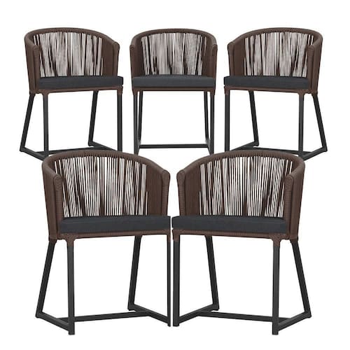5 Cadeiras De Jantar Noronha Preta Corda Náutica E11 Trama Marrom
