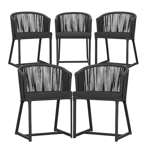 5 Cadeiras De Jantar Noronha Preta Corda Náutica E11 Trama Preto