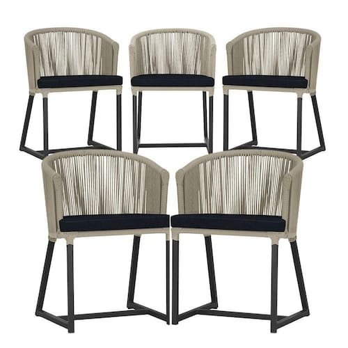 5 Cadeiras De Jantar Noronha Preta Corda Náutica E12 Trama Rami
