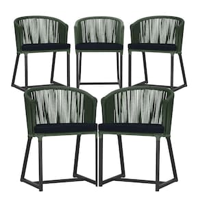 5 Cadeiras De Jantar Noronha Preta Corda Náutica E12 Trama Verde - Preto