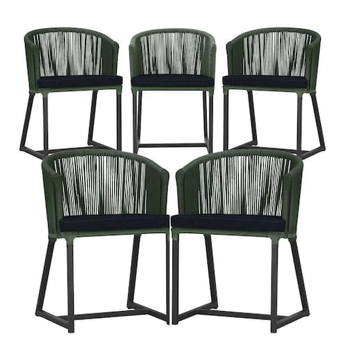 5 Cadeiras De Jantar Noronha Preta Corda Náutica E12 Trama Verde