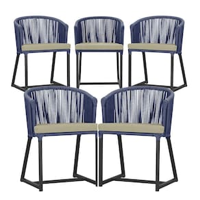 5 Cadeiras De Jantar Noronha Preta Corda Náutica E7 Trama Azul