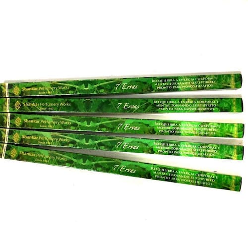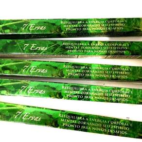Incensos Indianos - Importados - Aromas - Aromatizador - Purificador de ambiente Emitimos Nota Fiscal Eletrônica para todos os Produtos. Valor referente à 5 caixas Incensos importados da Índia Cada caixa contém 8 varetas Tamanho Vareta: 24cm Total de varetas: 40 unidades. Peso médio de cada caixa: 15 gramas 7 ervas: Reequilibra a energia corporal e mental, tornando seu espírito pronto para novos desafios. Fabricado por: Shankar Perfumery Works - Since 1963 Os incensos transmutam e purificam as energias do ambiente, atraem boas vibrações e perfumam o ambiente. Proporcionam a sensação de bem estar.