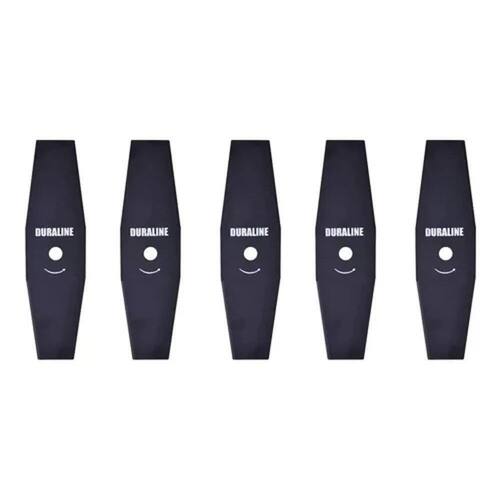 5 facas lâmina roçadeira 2 pontas 300mm furo 1pol 25,4mm 2mm Kit 5 laminas 2 pontas - 330mm furo 20mm Utilizável de ambos os lados. É apropriada para trabalhos em grandes superfícies em vegetação tipo pastagem, grama dura, capim e ervas. Produto nas roçadeiras stihl modelos: Fs 160 / 220 / 280 / 290 / 300 / 350 A lâmina de corte para roçadeiras da marca duraline conta com 2 pontas que fornece um diâmetro de corte de 330 milímetros, utilizado para aplicação direta e única em roçadeiras. Esta lâmina foi desenvolvida unicamente para aplicação de uso em roçadeiras. Antes de instalar na roçadeira, a lâmina 2 pontas para roçadeira, deve ser verificada antes de cada uso, prestando muita atenção se há alguma trinca, rachadura ou até mesmo desbalanceamento, evitando assim acidentes. Para maior proteção do operador, esta nunca deve ser utilizada sem o uso da proteção da roçadeira. E também para proteção de demais pessoas ou animais, certifique-se destes estarem a uma distância mínima de 15 metros do local de trabalho da roçadeira. Espessura: 2,00 mm Diâmetro furo central : 20 mm Diâmetro de corte : 330 mm Material: aço sks com cromo vanádio Quantidade na embalagem: 5 unidades Marca: Não Informado