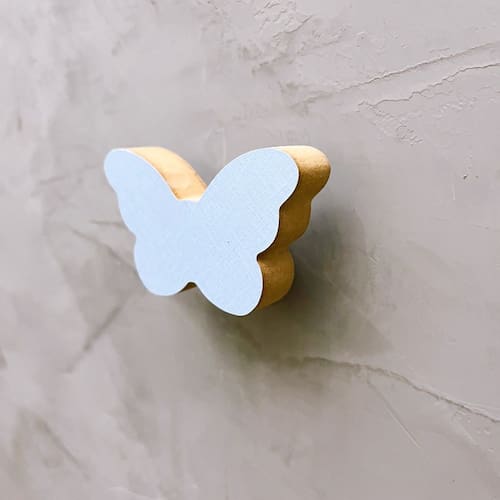 A face vai colada com super cola e acaba sendo apenas decorativa, pois é o suporte quem recebe o esforço, suportando até 5 Kg. Anúncio referênte à 5 unidades. Modelo: Borboleta Tamanho da face: 6,0cm X 4,0cm; Material: MDF laminado 15mm melamínico | borda cru Cor: Rosa, Azul, Branco e Cinza