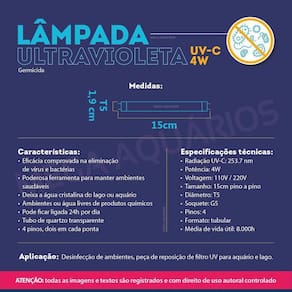 Composição do kit: 5 lâmpadas germicida de 4W T5 UV-C