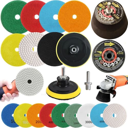 5 Lixas Grão 4 Pol. 100mm Diamantada + 1 Rebolo Cônico 45 Graus + 1 Disco Prato + 1 Pino M14 KaQi Kit 5 Lixas Diamantadas Disco 4 Polegadas 100mm KaQi + 1 Rebolo Grão 120 Copo Cônico 45 Graus 4 Polegadas M14 Forcety. + 1 Suporte Prato Disco 100mm M14 KaQi + 1 Pino Adaptador Multiuso Rosca Universal M14 KaQi. Para Desbastes, Polimentos, Acabamentos, Boleamentos, Lixamentos a Seco e Úmido. Ideal para profissionais e entusiastas de reformas e construção. Transforme o acabamento das suas superfícies com o Kit 5 Lixas Grão 4 Pol. 100mm Diamantada + 1 Rebolo Cônico 45 Graus + 1 Disco Prato + 1 Pino M14 Desenvolvido para oferecer o melhor polimento e acabamento, é perfeito para quem busca resultados profissionais, tanto em pedras como granitos, mármores, cerâmicas, quanto ardósia, calcário, dekton, quartzo, porcelanato, pedra projetada, concreto, nanoglass, super nano, vidro e muito mais. Seu lixamento pode ser a seco e a úmido, o que proporciona um processo mais rápido, sem gerar calor excessivo. Assim, é possível garantir um resultado sem manchas ou falhas, e ainda favorece um efeito brilho d'água incrível O Rebolo Copo Cônico 10x5cm Grão 120 Forcety é ideal para desbastes, retificações, boleamentos e acabamentos. Projetado para oferecer eficiência, durabilidade, confiabilidade e resultados excepcionais, é perfeito para profissionais e entusiastas de reformas e construções. Não à toa, é o rebolo número 1 das marmorarias, azulejistas e oficinas de todo Brasil O Disco 100mm e o pino adaptador M14 podem ser utilizados em conjunto com as lixas e com o rebolo. Com sistema de gruda e desgruda fácil, podem utilizadas em lixadeiras, esmerilhadeiras, politrizes, furadeiras, parafusadeiras. Permite, assim, ampliar a gama de usos do kit. Principais características: 1. Durabilidade extra, alta resistência ao desgaste, longa vida útil e desempenho, além de excelente performance em diversos tipos de materiais. 2. Acabamento impecável no desbaste e polimento de superfícies de pedra, mármore, calcário, ardósia, porcelanato e outros, sem deixar manchas ou marcas indesejadas. Pode ser trabalhada em superfícies claras ou escuras. Oferece uma remoção eficiente de material e um acabamento uniforme. 3. Versatilidade no uso com diversas ferramentas, já que pode ser Utilizado em esmerilhadeiras, lixadeiras, politrizes e furadeiras elétricas. 4. Eficiência de montagem, uma vez que possui sistema de fixação rápido. Basta encostar a lixa no suporte do disco para grudar, e, para remover, é só puxar na direção contrária. Conteúdo da embalagem: 5 Lixas DÁgua 4 Pol. 100mm Disco Diamantado KaQi GRÃO. + 1 Rebolo Grão 120 Copo Cônico 45 Graus 4 Polegadas M14 Forcety. + 1 Suporte Prato Disco 100mm M14 KaQi + 1 Pino Adaptador Multiuso Rosca Universal M14 KaQi. Especificações Lixas: Diâmetro: 100mm  4 Polegadas . Furo central: 1,3cm diâmetro. Espessura 1 unidade: 0,4cm. Maleabilidade: flexível. Lixamentos: seco e úmido. RPM: ideal entre 3000 a 5000 rotações por minuto. Material da lixa: diamante sintético industrial e resina premium. Costado: tipo vellcro. Fácil de fixar e remover. Especificações Rebolo: Trabalho: a seco ou refrigerado com água. Diâmetro: 4 Polegadas 100mm  10,16cm  x altura 5,08cm. Velocidade: 9023RPM. Rosca: M14. Material: Carbeto de Silício  SiC  com diamantes. Norma ABNT NBR 15230. Especificações Prato Suporte: Diâmetro do disco: 100mm  4 Polegadas . Modelo do disco: M14 com superfície tipo vellcro. RPM: até 12000. Rosca: padrão M14  14mm . Especificações Pino Adaptador M14: Para Furadeira Parafusadeiras, Politrizes, Lixadeiras e Esmerilhadeiras. Fixa em discos pratos M14 para uso com lixas, boinas, espumas de polir, entre outros acessórios. Rosca: M14  14mm . Pino largura: 8mm. Altura total: 4,4cm.