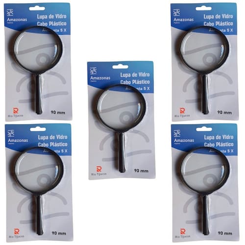 Kit contendo 5 Lupas de Vidro 90mm com Cabo Plástico