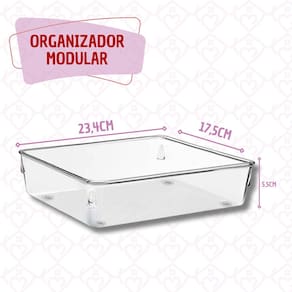 Esses organizadores são perfeitos para setorizar suas gavetas. Você compõe conforme os itens que serão organizados, além de serem empilháveis para otimizar o espaço utilizado e modulares para que você defina o tamanho e a quantidade que necessita para organizar melhor o seu ambiente. São ideais para temperos, materiais de escritório, gavetas e outros objetos pequenos. Em plástico de alta qualidade, transparente para facilitar a visualização dos objetos.