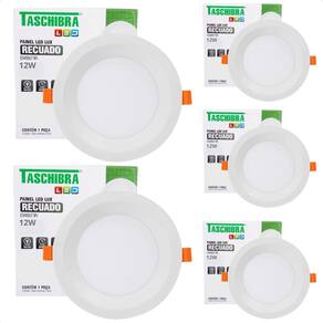 Kit 5 Painel de Led Redondo Embutir Recuado 12W Bivolt Taschibra 6500K Frio Características Gerais do Produto: Dimensões AxLxP CM : 1,6 x 12 x 12 Formato: Redondo Nicho do recorte CM : 11X11 Cor da luz: 6500K Frio Produzido em: Plástico de Engenharia, Anti-UV, Driver Onboard, Placa Interna em Alumínio e Componentes Eletrônicos Voltagem: Autovolt Utilizado em 110v e 220V Alimentação: Energia elétrica Cor acabamento: Branco Potência: 12W Fluxo luminoso: 720 Lumens IRC: 80 Ângulo de abertura: 120 : 1 ano junto ao fabricante Aplicação: Embutir Vida útil: 20.000 horas Acompanha lâmpada: Não necessita, LED já integrado Grau de proteção: IP20 Ajuste de intensidade Dimerizar : Não Acompanha o produto: 05 Painel Led Completo : 1 ano junto ao fabricante