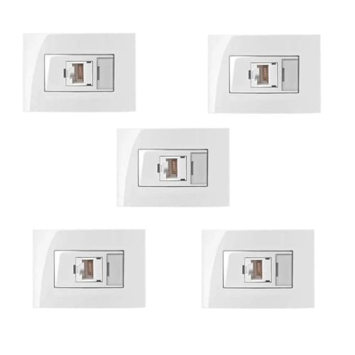 Tomada para embutir em madeira, MDF, MDP ou derivados. Utilizada principalmente na marcenaria, ideais para peças planejadas como armários, cabeceiras, painéis, bancadas, balcões de cozinha, mesas para escritório, entre outrasModelo: RJ45 - Informatica - CAT-5 , Rede Logica de InternetCor: Branco BrilhanteComposição: Materiais plásticos isolantes termoplásticos de engenharia e ligas metálicas condutorasComprimento: 41.9mm / Largura: 65mm / Altura 45mmPeso: 0,030 kg