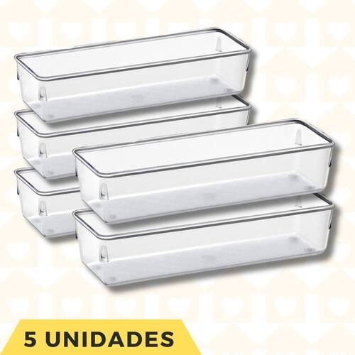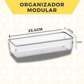 Esses organizadores são perfeitos para setorizar suas gavetas. Você compõe conforme os itens que serão organizados, além de serem empilháveis para otimizar o espaço utilizado e modulares para que você defina o tamanho e a quantidade que necessita para organizar melhor o seu ambiente. São ideais para temperos, materiais de escritório, gavetas e outros objetos pequenos. Em plástico de alta qualidade, transparente para facilitar a visualização dos objetos.
