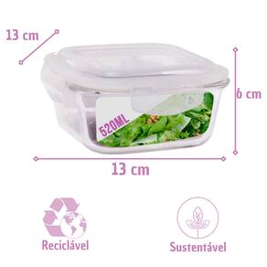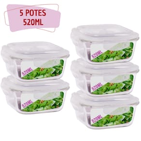 Pote de Vidro 520 ml com Tampa Hermética Quadrado 5 Unidades