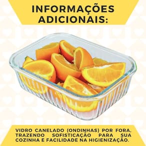 Os potes herméticos canelado são perfeitos para o dia a dia e ideal para conservar comidas em diferentes temperaturas, podendo ir à geladeira e/ou freezer. Eles garantem o melhor sabor, não fica com cheiro indesejado e você pode esquentar no micro-ondas ou no forno, nesses casos tire a tampa. Ideal também para quem trabalha e leva o alimento de casa, o pote possui vedação com tampa hermética, antivazamento, garante que os alimentos sejam bem conservados e o vidro super-resistente.
