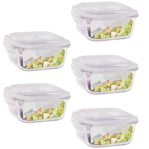 Kit com 5 Potes de Vidro com Tampa Hermética Quadrado 320 ml