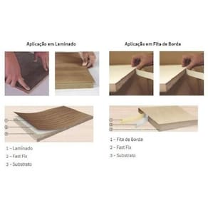 A fita dupla face fastfix substitui a cola de contato para colagem de fita de borda, laminado ou engrosso de peça na marcenaria, com colagem super resistente é ideal para serviços que presem pela qualidade no acabamento, além da resistência a umidade e temperatura.Disponível nas medidas de 22, 35 e 64mm por 10 metros linearesprincipais vantagens da utilização da fita fast fix- sem desperdício- sem cheiro- sem sujeira- aplicação muito mais rápida- melhor qualidade de acabamento- maior durabilidade e resistência- suporta umidade e temperaturas acima de 150ºcinstruções de uso1 - limpar a superfície onde será aplicado a fastfix.2 - retirar o papel protetor apenas quando for aplicar a fita.3 - após a aplicação, usar lima ou estilete para recorte do excesso.4 - o adesivo tem 72h para a cura total.Armazenamento24 meses em embalagem fechada em local seco e fresco, a temperaturas entre + 5 c e 27 c.Para o armazenamento adequado manter estocado na metade inferior desta faixa de temperatura