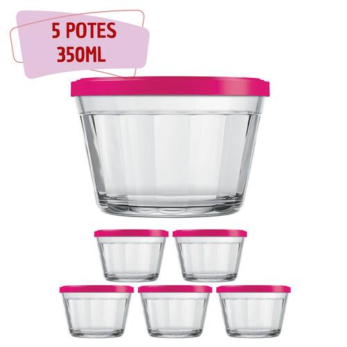 5 Tigelas Vidro Americano Tampa Plástica Sortida