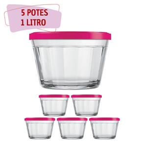 5 Tigelas Vidro Americano Tampa Plástica Sortida 1 Litro