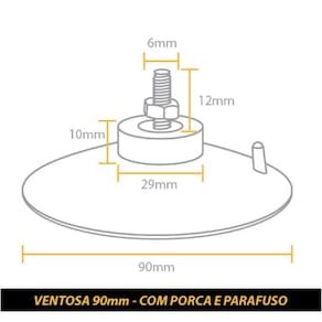 Kit contendo 5 Ventosas de 90mm (9 cm) Em PVC Preto Com Parafuso e Porca
