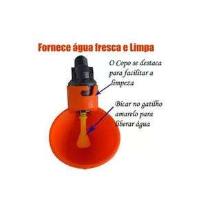 Funcionamento: A água é liberada quando a ave toca na válvula, mantendo o copinho com água fresca.