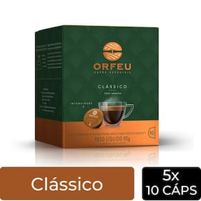 5 caixas com 10 cápsulas orfeu clássico para dolce gusto Peso líquido total: 375g 7,5g por cápsula