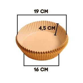 envio em até 24Horas Forma descartável para air fryer grande 19cm x 4,5cm - kitCom 50 formas Desenvolvido com o objetivo de evitar o acúmulo de gordura eOleosidade durante o processo de fritura na air fryer, o protetor premium temGanhando cada vez mais destaque no mundo culinário, pois além de evitar queVocê fique perdendo muito tempo limpando ela após o uso, evita que ela percaSua anti aderência devido a quantidade de limpezas Criado a base de celulose, o protetor não prejudica sua saúdeE nem transmite sabores indesejados ao alimento durante o processo. Benefícios: - mantém a sua air fryer sempre limpa- não gruda sujeiras- dispensa o uso de óleo- material a prova dágua, a prova de óleo, antiaderente e100% saudável- material não tóxico e inodoro- boa resistência ao calor, suporta até 220- pronto para usar- pode ser utilizado em diversos eletrodomésticos: air fryer todos os modelos , micro-ondas, forno elétrico e a gás, etc... especificações - material: papel biodegradável- diâmetro do fundo: 16cm- diâmetro superior: 19cm- altura: 4,5cm conteúdo da embalagem - 01 kit com 50 formas de papel para air fryer Marca: Aushopexpress